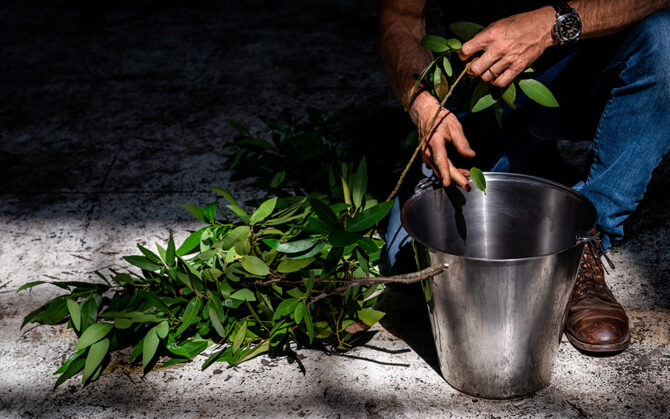The Douglas fir we use in Terroir comes from a forest in Mendocino, where it is harvested seasonally to help with fire abatement. California bay laurel grows abundantly in the hills around the Bay Area. We wok-roast the coriander we use in Terroir, which brings out an earthy aroma. Angelica and orris root balance the bright aromatics of lemon and Seville orange. Sage, Saigon cinnamon, cardamom, and fennel seed complete the picture, while juniper brings the botanicals together.